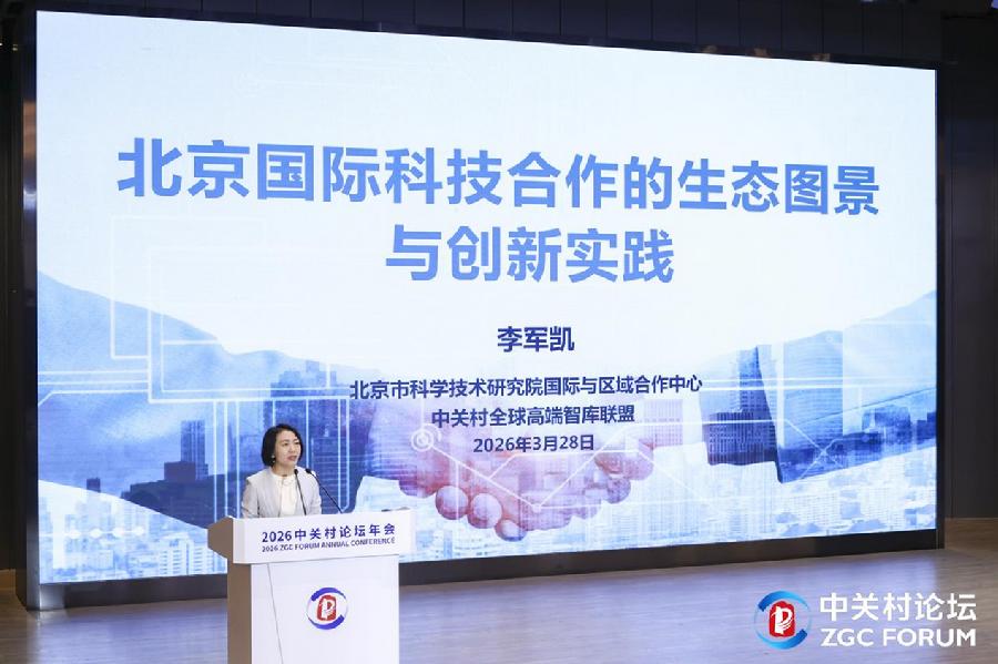 3月28日下午,中关村全球高端智库联盟(以下简称“智库联盟”)秘书长、北京市科学技术研究院国际与区域合作中心主任李军凯受邀参加2026中关村论坛年会“民间智慧・共享科创”论坛,并围绕“国际民间科技交流合作”议题作主旨演讲。 本次论坛由北京市民间组织国际交流促进会主办,北京市科学技术协会协办,中关村社会组织联合会承办。论坛以“汇聚民间智慧·共享科创机遇”为主题,吸引来自国内外民间组织、科技企业、高校院所及国际机构代表等220余人参会。论坛设置成果发布、主旨演讲两大环节,发布5项重要创新成果,多位行业专家、国际代表围绕“民间组织助力科技创新”“国际民间科技交流合作”两大核心议题展开深度交流,充分展现民间组织参与科技创新的务实成效,为凝聚发展共识、深化民间国际科技交流合作注入新动能。在主旨演讲环节,李军凯以《北京国际科技合作的生态图景与创新实践》为题作主旨报告,系统解读北京