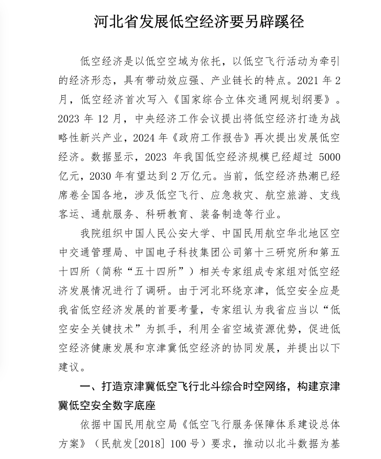 2025-11-21The Development of Low-altitude Economy in Hebei Province Has to Find a New Path by Hebei Academy of Sciences points out that Hebei Province’s low-altitude economy should be deployed from a strategic perspective of the coordinated development of Beijing-Tianjin-Hebei.